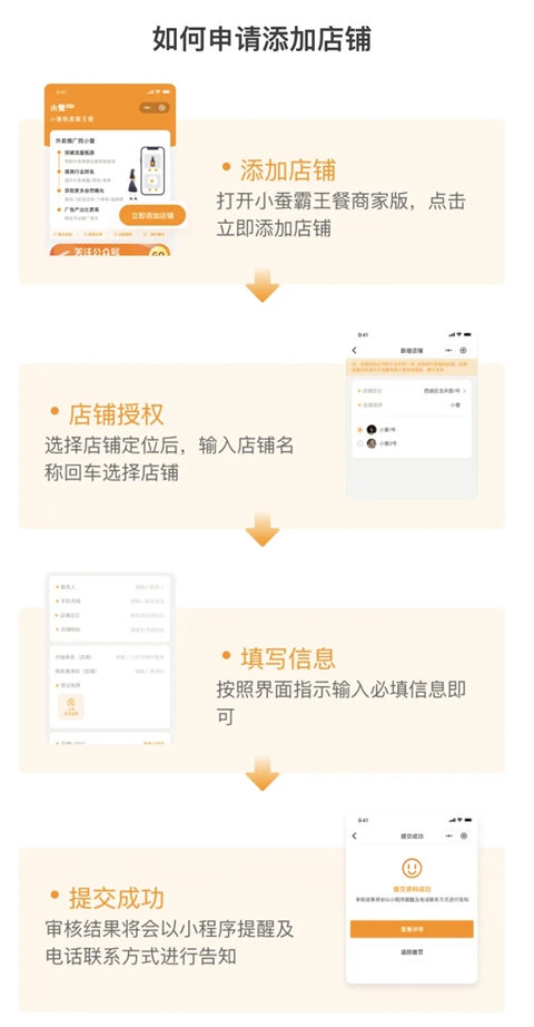 小蚕霸王餐商家版致力于帮助外卖商户改善门店运营,通过拓展营销渠道,提升门店排名,获得更多自然曝光,同时降低门店在平台的推广成本。商户借助此工具,可实现如下能力。