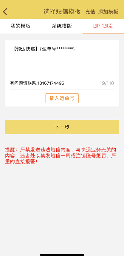 即写即发:随便编写内容不需要标题,只能用一次,发送成功后内容不会保存,编写内容请注意禁止写和快件内容无关事