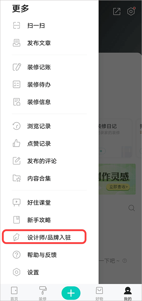 2、在更多界面选择“设计师/品牌入驻”