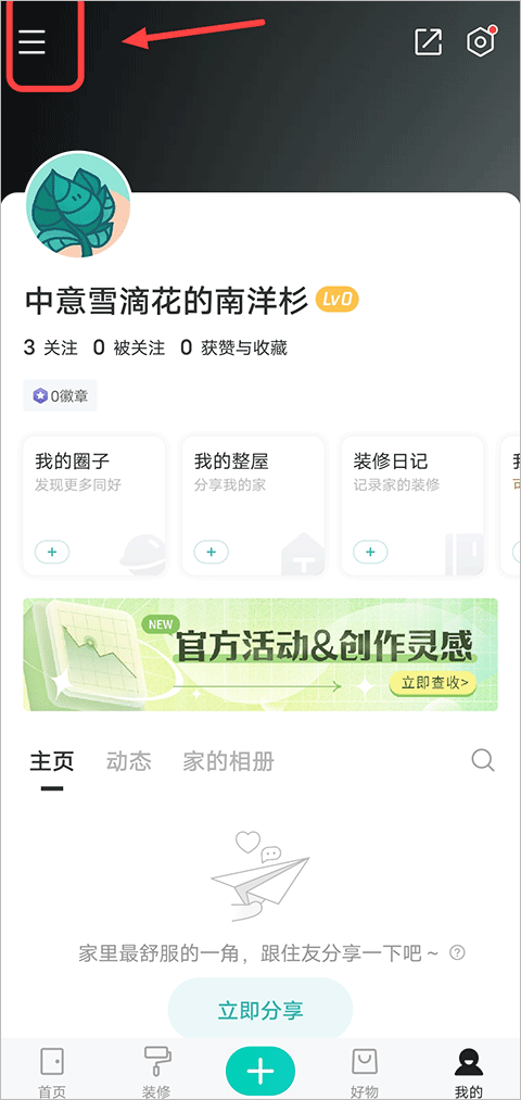1、进到好好住app,点击左上角的“?”图标。