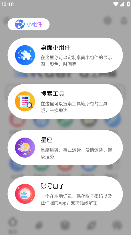 快递查询、音乐搜索、壁纸搜索:方便查询物流信息、音乐资源与壁纸素材。