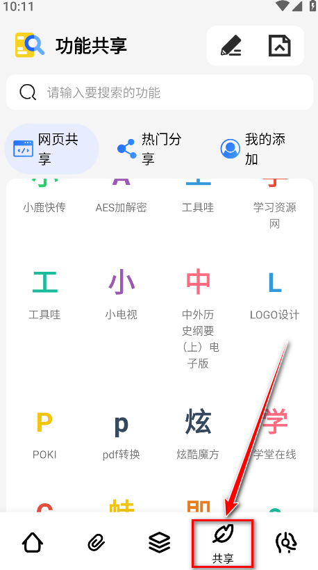 6.点击共享,也可以看到很多不同类型的功能,都是可以免费使用的哈。