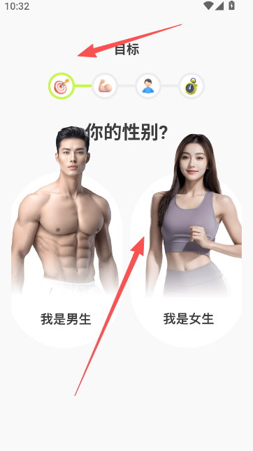 1、进入软件以后,首先按照男女性别来设定自己的目标。