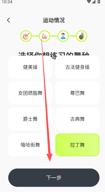 卡鼓点跳舞:提供尊巴、街舞、爵士、拉丁、有氧健身操等多种舞种课程,课程体系覆盖全身及局部塑形,可根据用户需求选择针对性训练部位(如腹部、腿部等)。