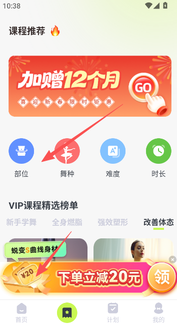 热汗舞蹈:课程同样涵盖尊巴、街舞、HIPHOP、有氧操等热门舞种,且对课程进行了更细致的分类,包括按部位(胳膊、胸、腹、腿等)、难度(零基础、进阶、高阶)、时长(0-5分钟、5-10分钟等)划分,用户能更精准地选择适合自己的课程。