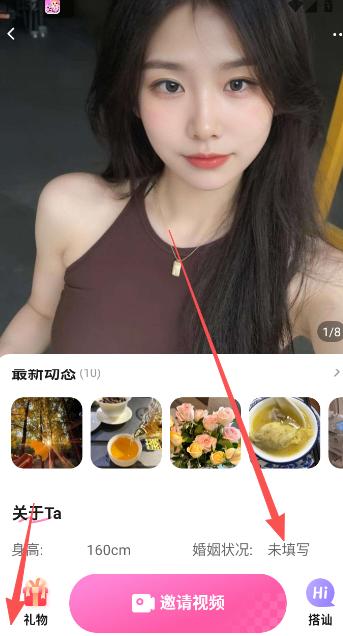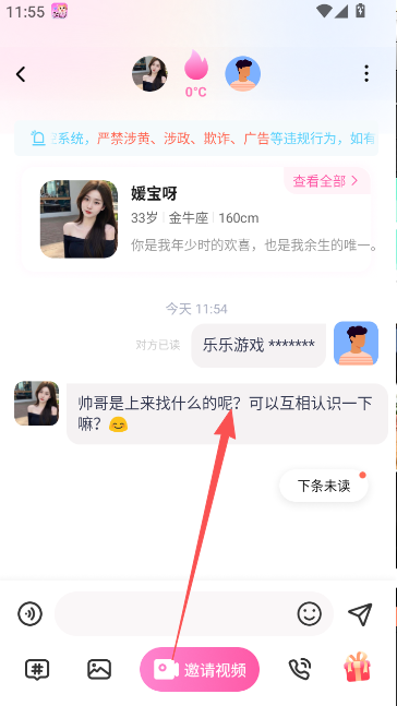 4、为了方便她能够关注到你,最好是先送礼物或是简单搭讪,提升互动值解锁邀请视频的线上功能服务选项。