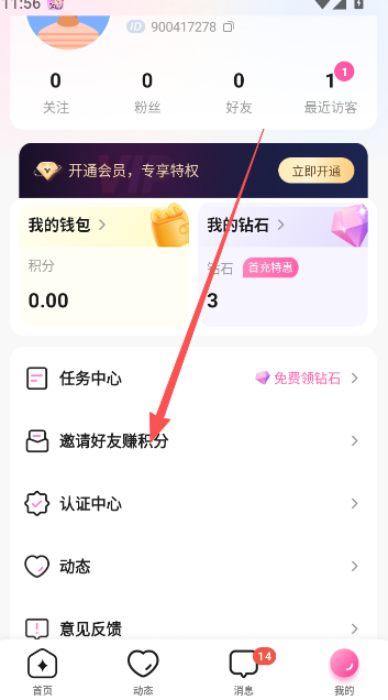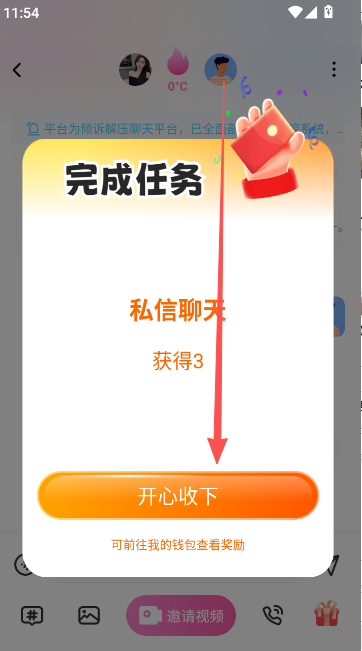 5、发送内容即可获得互动值3点,可在钱包中查看。
