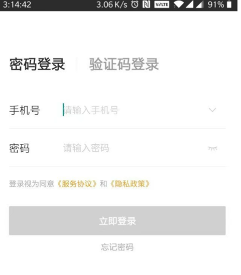 目前在APP端系统支持2种登录方式:【密码登录】及【验证码登录】;
