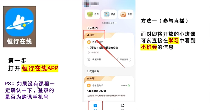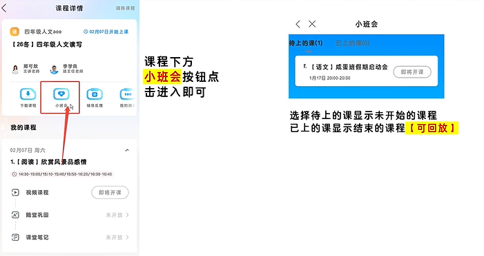 面对即将开放的小班课可以直接在学习中看到小班会的信息