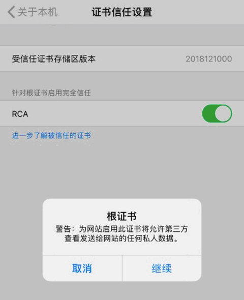 继续选择下载证书,弹出警告时,请选择“允许”。