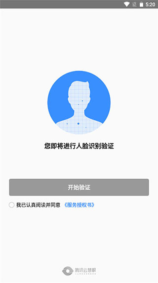 4、注册完后,用户就会进入人脸识别认证,勾选我同意授权书,点击开始验证;