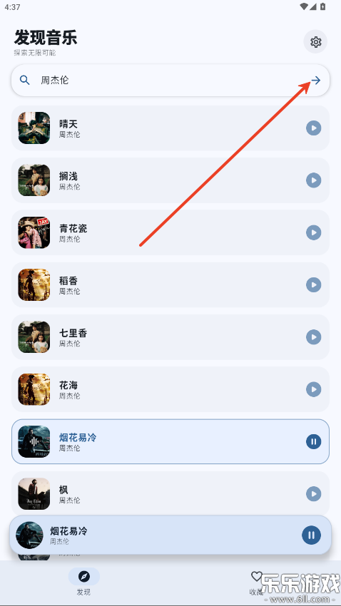 2.在搜索框内输入想听的歌曲,点击→
