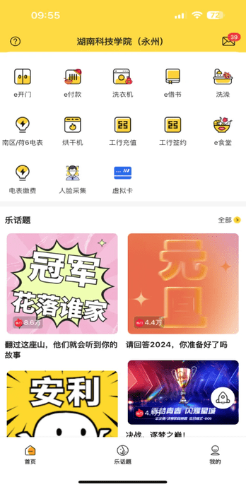 3.为在校学生用户提供校园宽带缴费、共享洗衣机、购买饮用热水、洗澡、智慧快递服务;