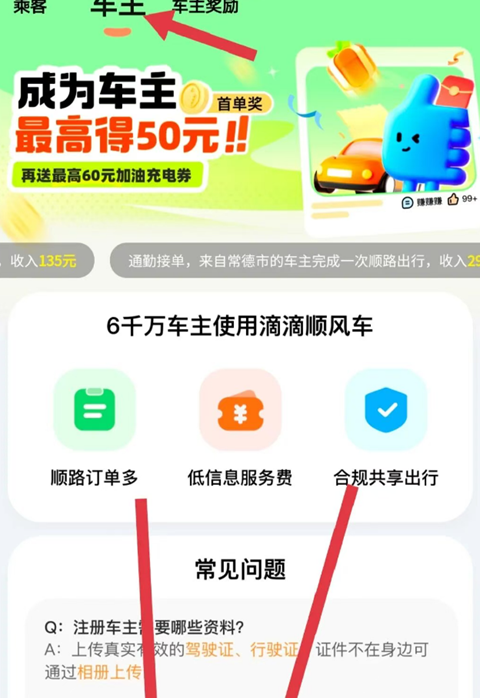 以上要求如果您都满足,开始注册滴滴顺风车车主吧!