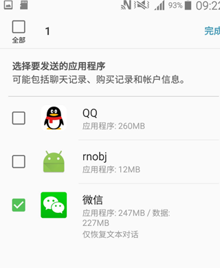 11、选择在旧设备上选择要传输的内容,勾选想要传输的文件后,点击【发送】;