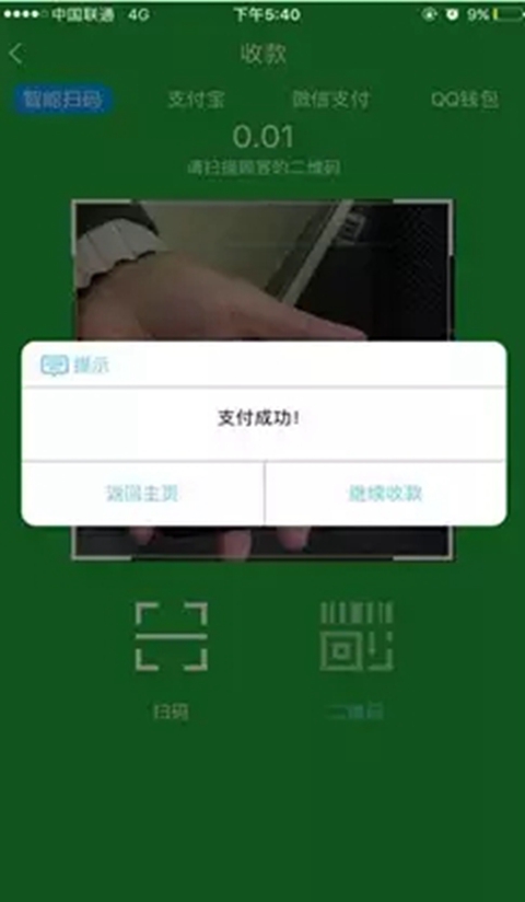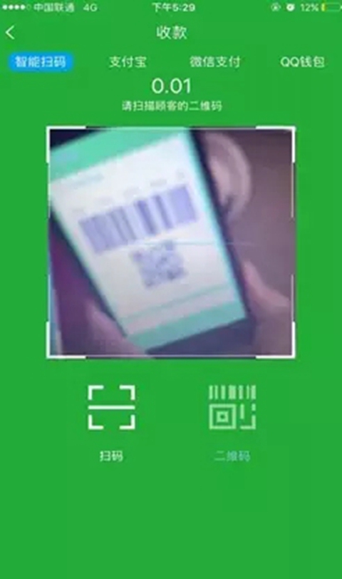 【功能说明】商家输入消费金额后,消费者出示付款码给商家,商家使用APP扫描消费者付款码