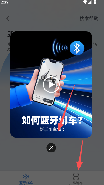 3、接着来到绑定车辆的提示引导界面,选择蓝牙或是扫码的方式进行车辆绑定。