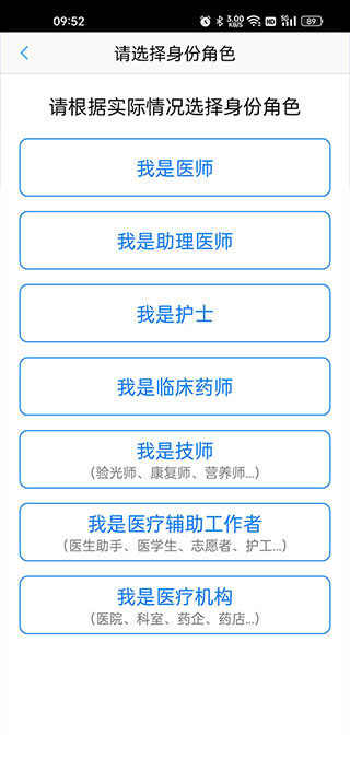 4、选择好进入之后,用户需要上传本人身份证、医师资格证、医师执业证、工作证、就可以完成了。