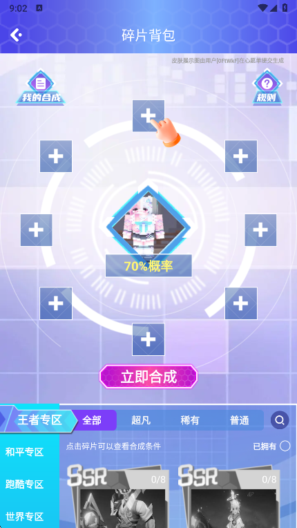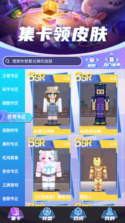 2、选择您喜欢的皮肤获取随便开始合成