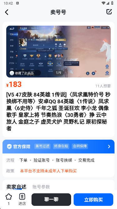 【安全保障】找回包赔、中介担保、玩腻换号、不玩回收等多重保障,确保您的账号安全。