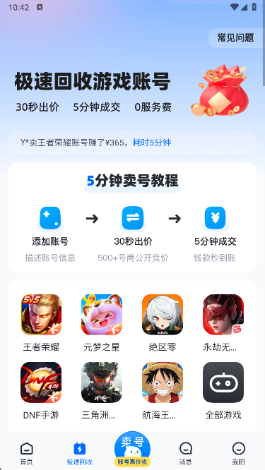 4、当然用户也是可以在这里回收相关游戏账号