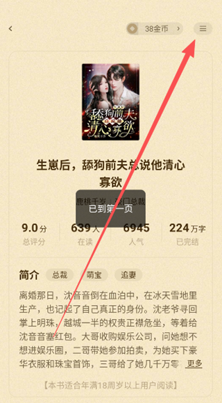1、点击打开一本你感兴趣的小说,进入详情界面。