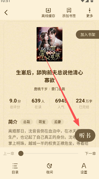 3、app上所有小说点击即可免费阅读,还提供听书模式