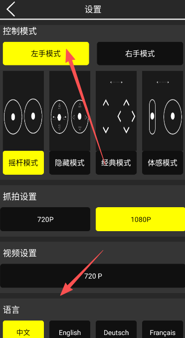 2、点击进入设置界面,开始完成对无人机控制部分的操作。