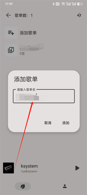 4、输入歌单名,点击添加。