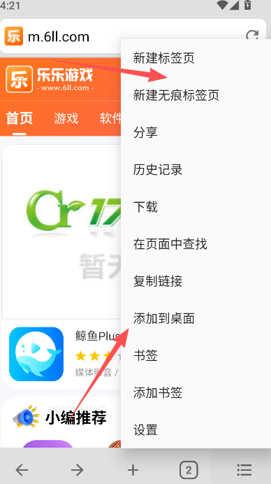 4、如果想要将当前的网页内容进行标签页的添加或是书签,可点击右下方的菜单列表,在这里进行编辑操作。