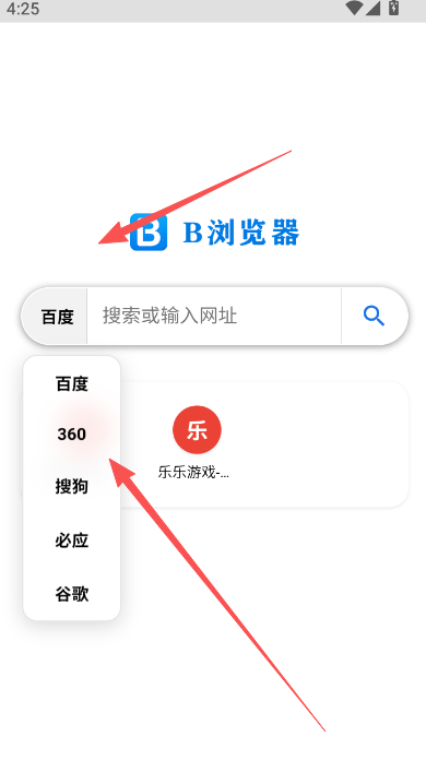 1、B浏览器打开进入以后默认是百度浏览器的渠道,用户们可自行进行修改