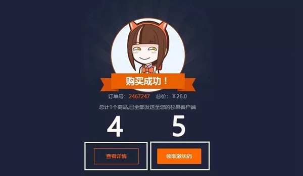 在提交订单后,玩家就可以使用“微信”或“支付宝”下单结账了!当出现下图,意味着你购买成功。