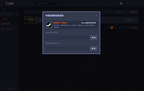 3、复制我们的cdkey,并点击上方的激活码使用说明即可快速激活游戏
