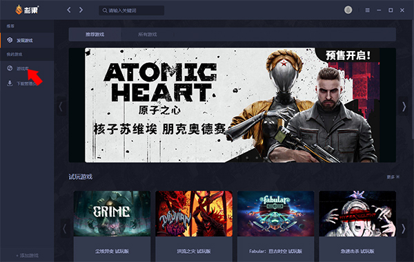 1、打开软件,登录我们的账号后,点击左侧游戏库按钮