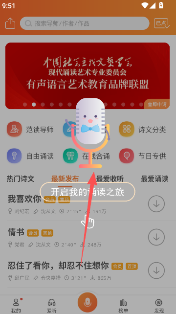手机K歌一样“玩”配乐诵读!中国作家协会全民阅读推广办公室指定“全民阅读推广单位”教育部、国家语委《中华经典诵读工程》龙头响应平台。