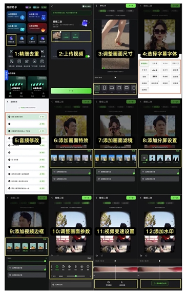 使用多个剧集素材,通过换背景、加画中画、调速、镜像、加滤镜、重新配音/解说、添加字幕和特效等方式,让原创度高于90%以上。