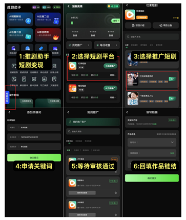 如果用户利用推剧助手制作的短剧推广视频,在符合平台规则的前提下,通过参与短剧推广的正规任务(如抖音、快手等平台的短剧发行人计划、星火计划等),引导用户下载短剧APP或付费观看,那么有可能获得相应的推广佣金或分成。