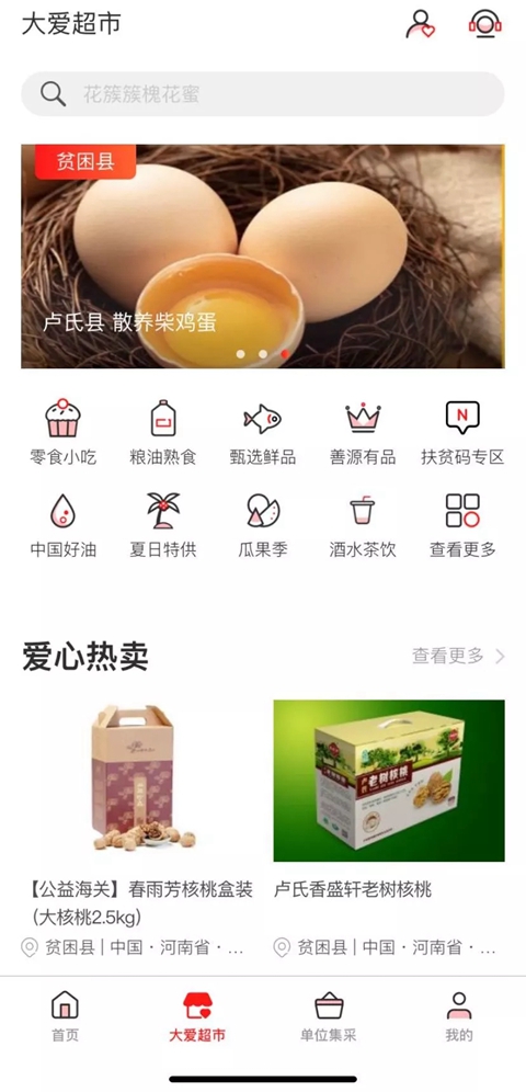 开启消费帮扶之旅个人消费扶贫在首页、“大爱超市”等版块选择产品直接付款购买。