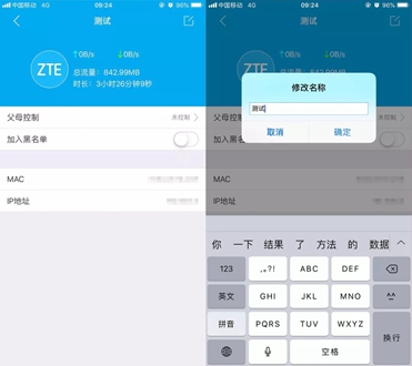 点击每个连接设备还可以给设备改备注,方便辨认还可以家人关注、父母控制、加入黑名单还可以看到设备的MAC地址,IP地址