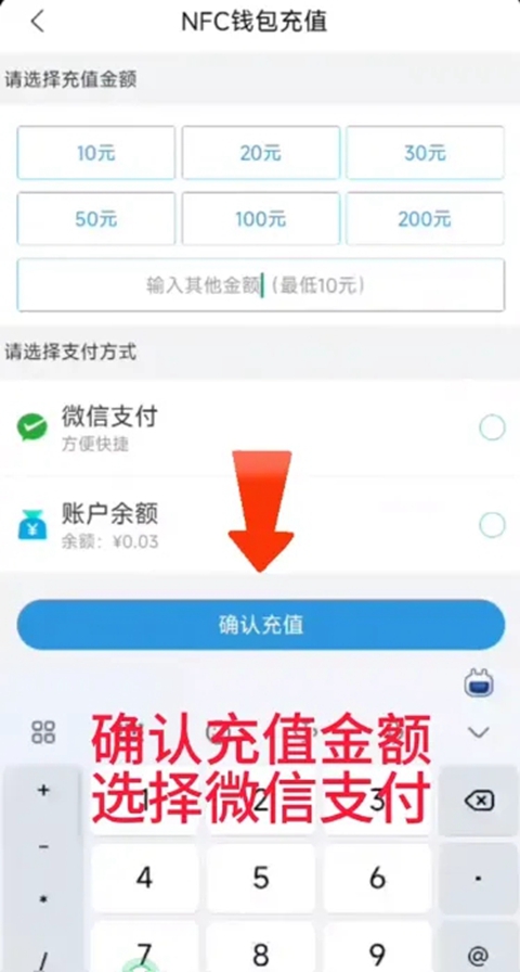 完成支付:选择好充值金额后,点击“确认支付”,然后根据之前绑定的支付方式完成付款操作。比如选择微信支付,会跳转到微信支付页面,输入支付密码即可。