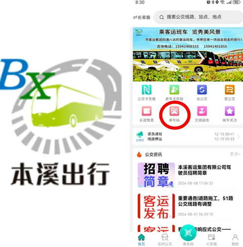 本溪出行是一款包含乘车码、实时公交、IC卡充值、老年卡年检、换乘查询、公交资讯等功能的便民出行应用。