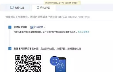 1、使用阿里钱盾扫码登陆开始进入认证流程。