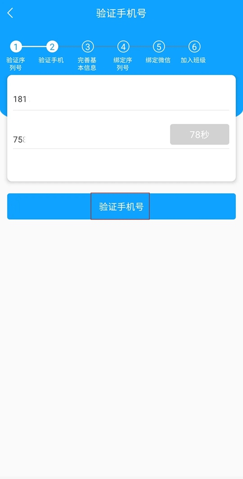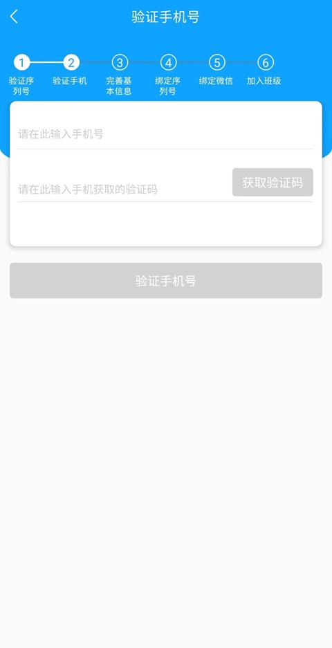 手机注册流程:手机注册->完善基本信息->绑定序列号->绑定微信->加入班级