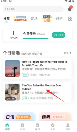 1、打开扇贝听力口语App,选择一篇听力原文。