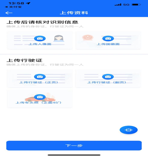 3. 根据提示上传并完善用户证件信息及车辆信息,并确认信息无误。