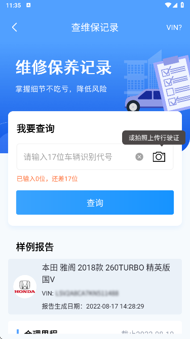 查汽车车辆保养记录查询,避免事故车,泡水车,调表车,规避购车损失,只需车架号一键查询,专家人工解读报告,现场验车指导,购车好帮手!通过17位车架号查询车辆的基本信息,品牌、车系、车型、年款、厂商指导价格等信息。查询车辆在4S店的历史维修保养记录,及时了解车辆的车况信息。