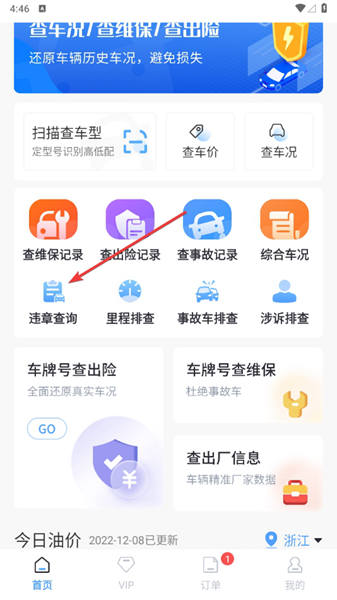 在首页点击进入【违章查询】按钮