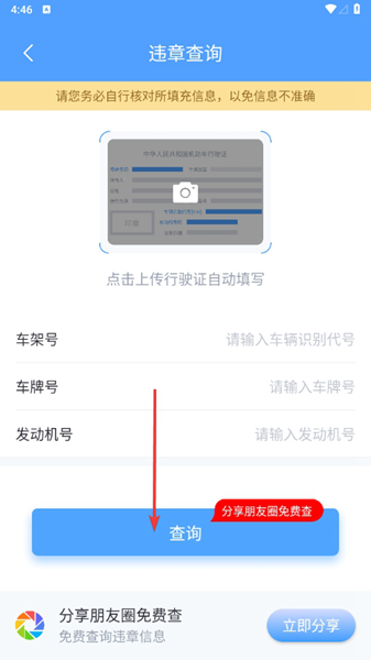 2、填写车辆信息后点击【查询】按钮获取结果
