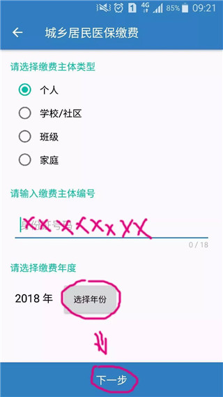 3、选择“个人”、输入身份证号,选择年份,点击“下一步”;