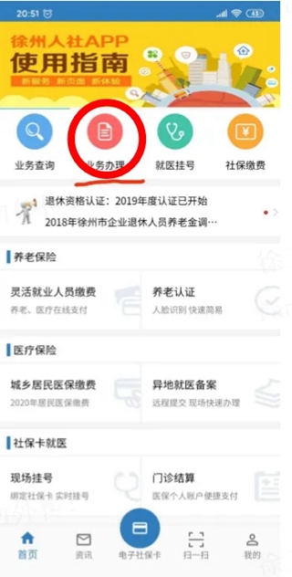 1、点击左下角“首页”,后点击红色按钮“业务办理”。
